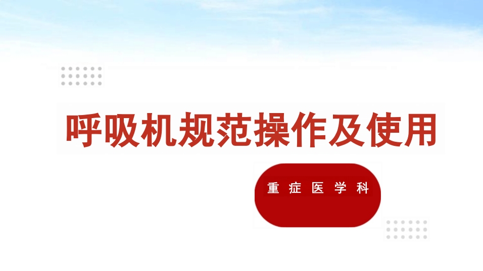 呼吸机规范操作及使用