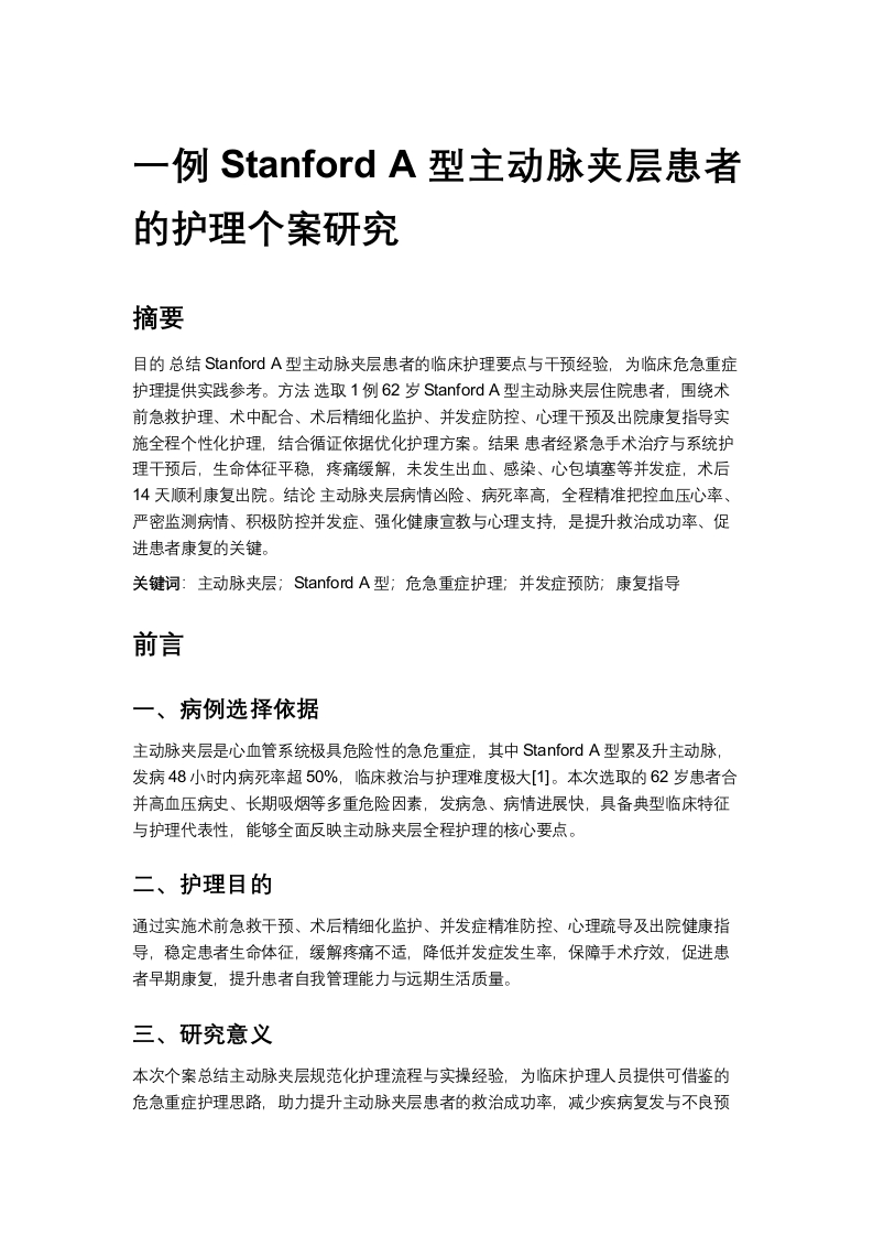 一例Stanford A型主动脉夹层患者的护理个案研究