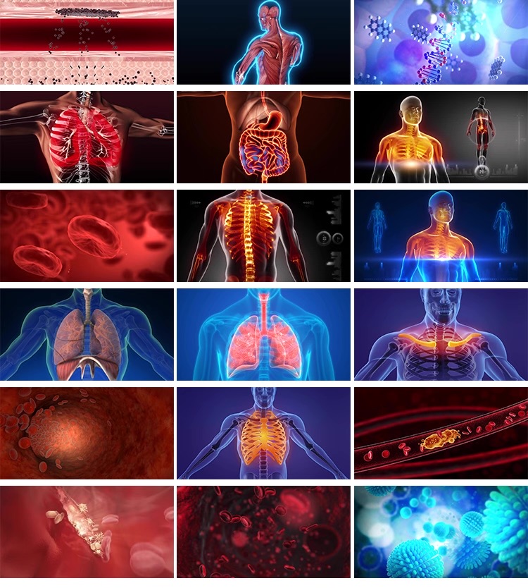 人体内部构造骨骼内脏血细胞血液流动三维动画3D演示视频剪辑素材